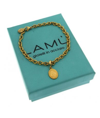 Bracciale uomo oro con medaglietta madonna in acciaio inox -Lamù gioielli