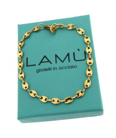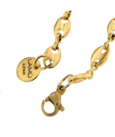 Bracciale uomo maglia chicco di caffè in acciaio inox placcato oro 18k - Lamù gioielli