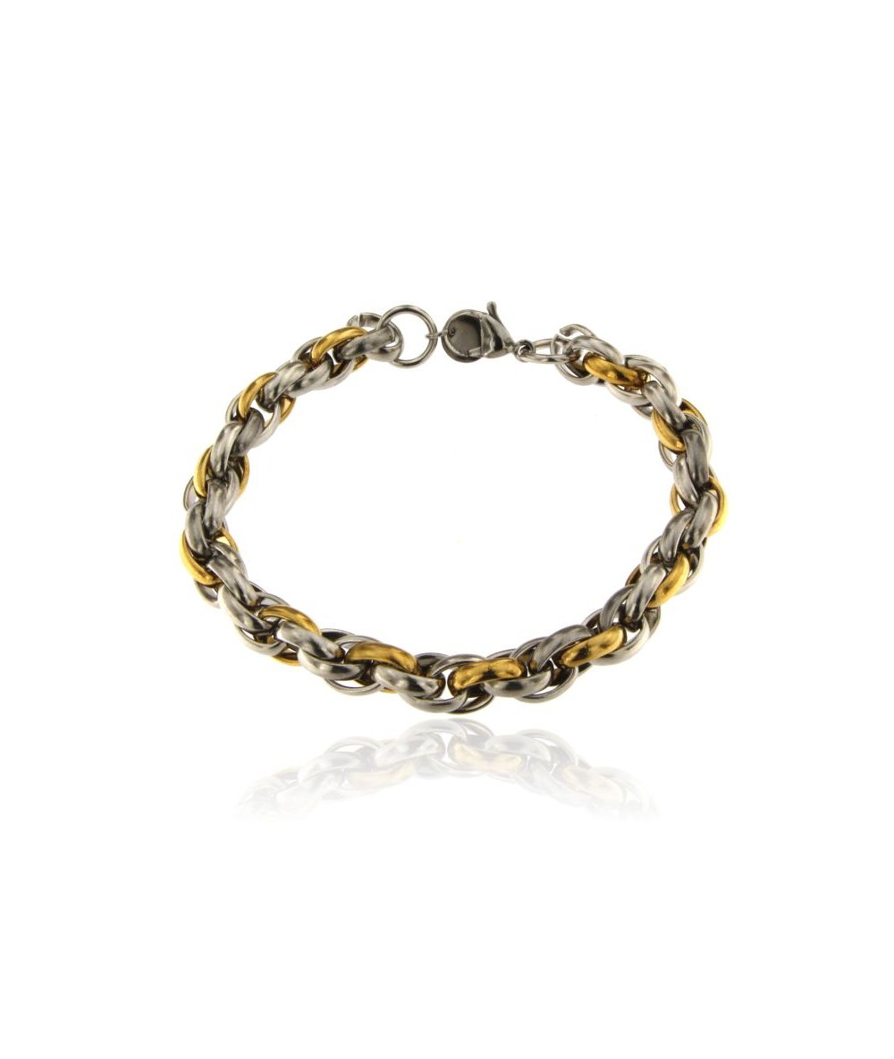 Bracciale uomo con maglia ad intreccio in acciaio inox bicolore