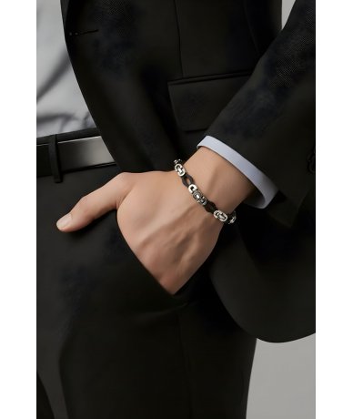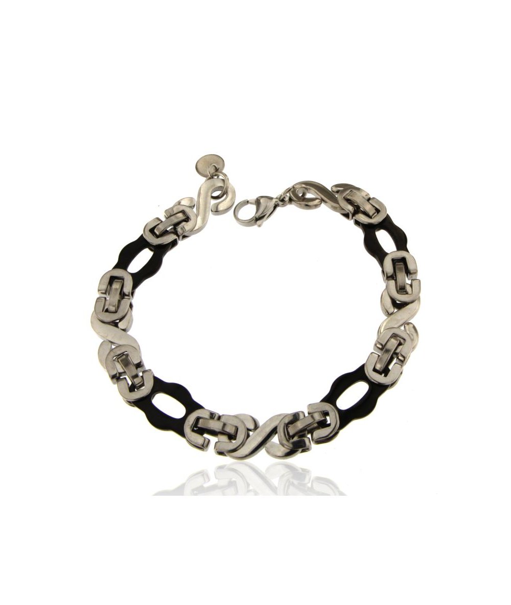 Bracciale uomo con maglia in acciaio inox bicolore nero