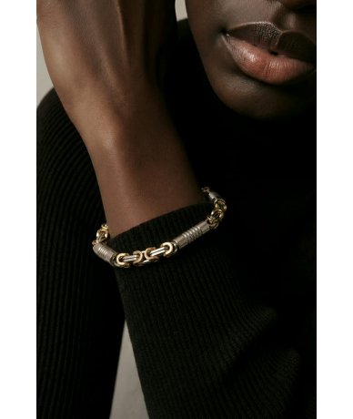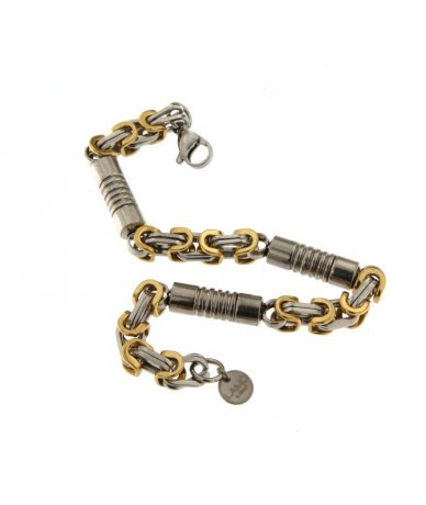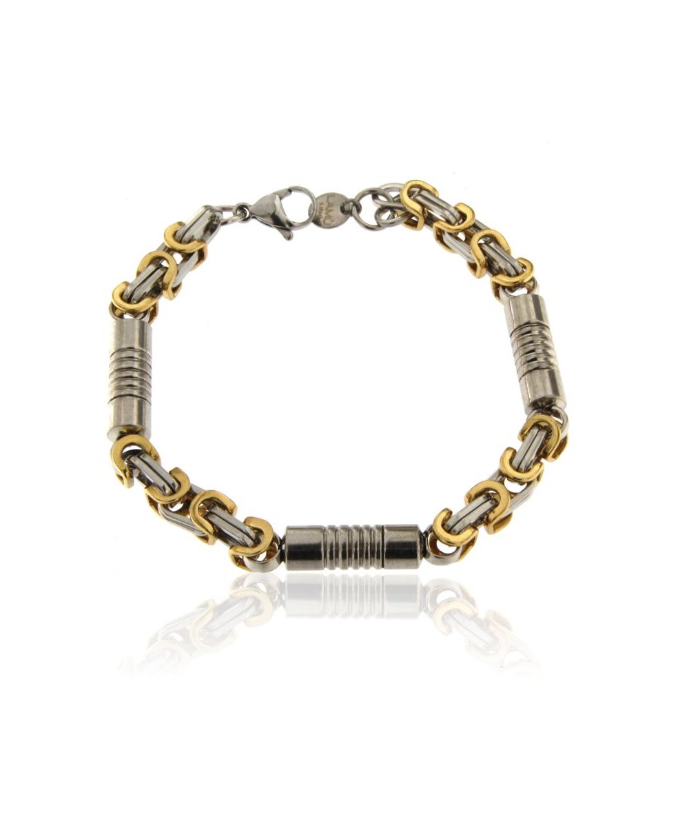 Bracciale uomo in acciaio inox bicolore acciaio e oro con cilindri