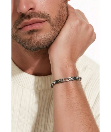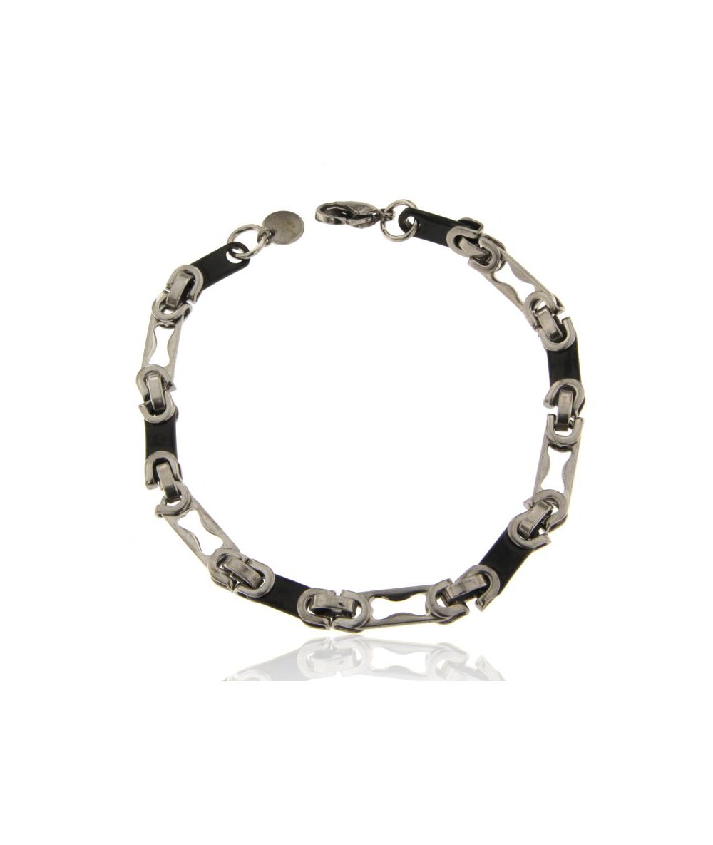 Bracciale uomo in acciaio inox bicolore alternato nero e acciaio