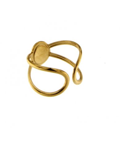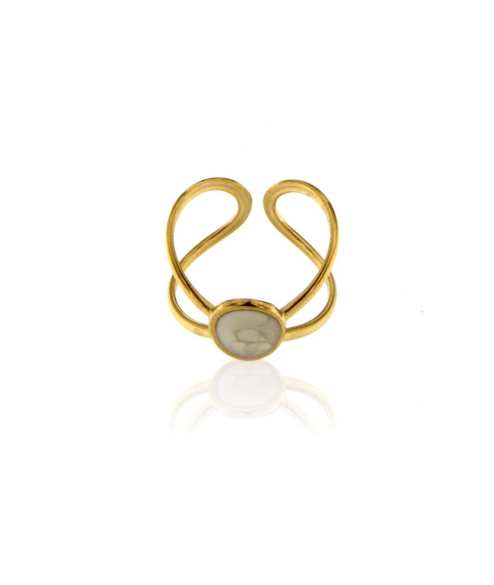 Anello con centrale ovale bianco in acciaio inox placcato oro 18k