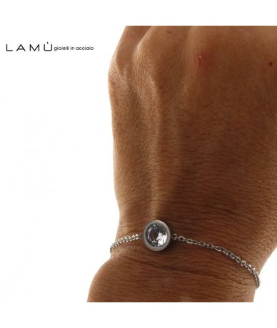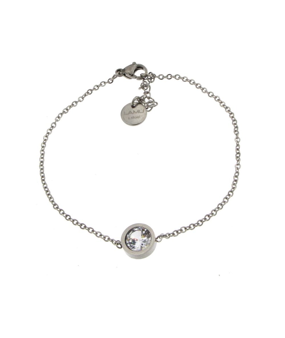 Bracciale con zircone tondo piatto in acciaio inox- Lamù gioielli