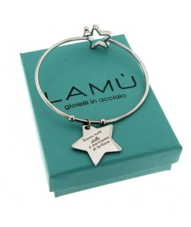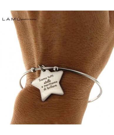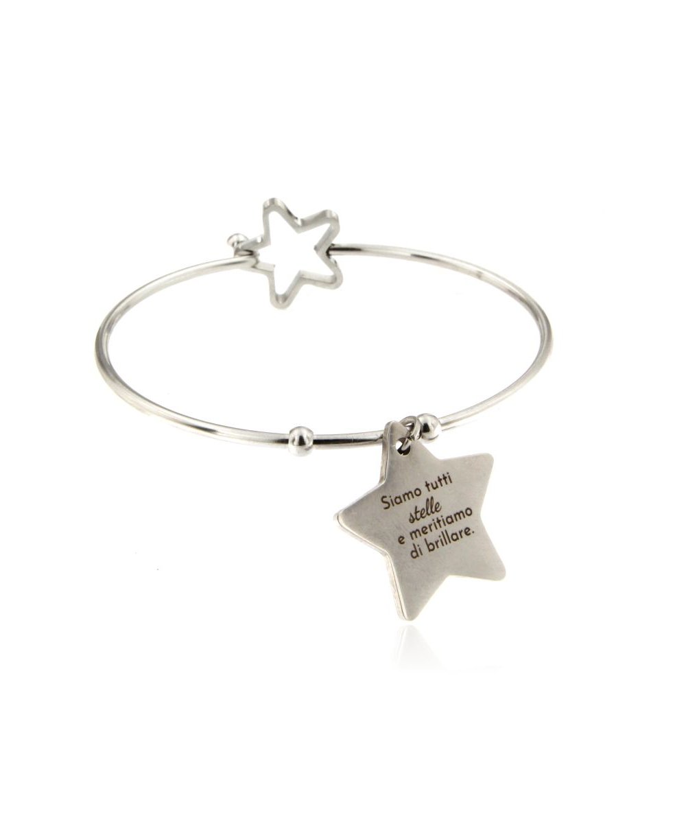 Bracciale rigido in acciaio inox con stella incisa " Siamo tutti stelle e meritiamo di brillare "