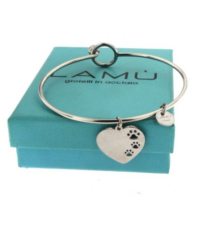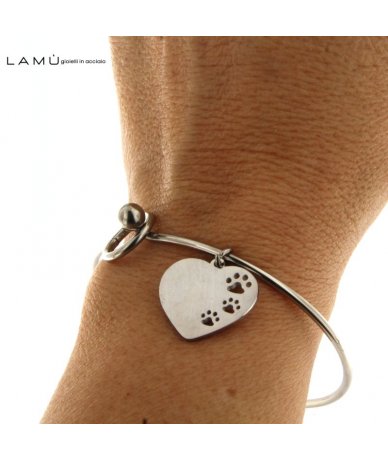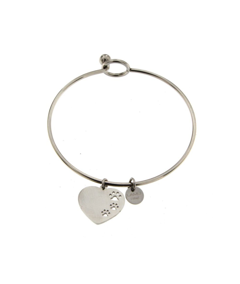 Bracciale rigido in acciaio inox con cuore con orme incise