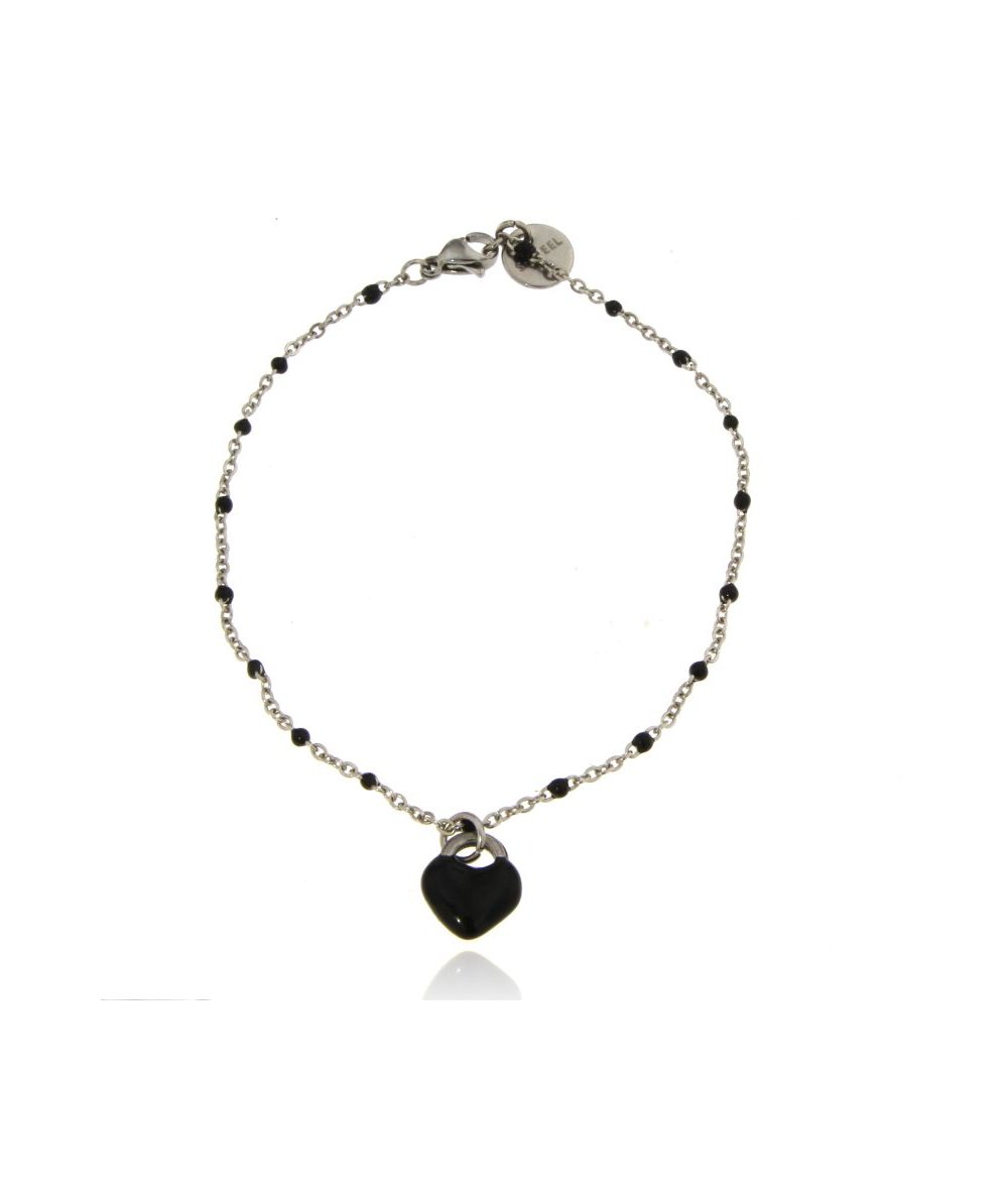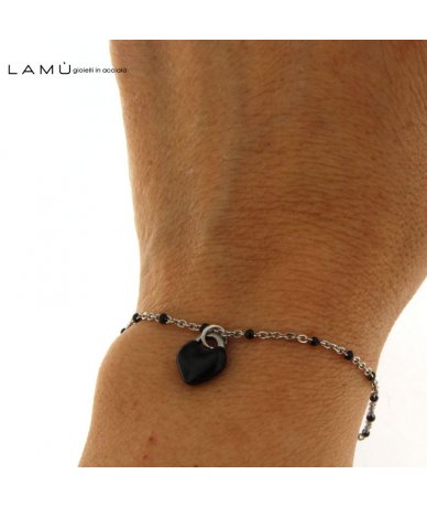 Bracciale con charm cuore bombato smaltato nero in acciaio inox - Lamù gioielli