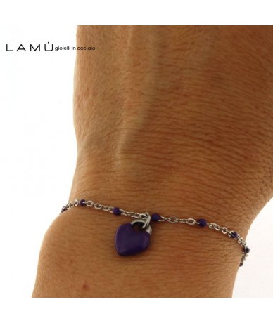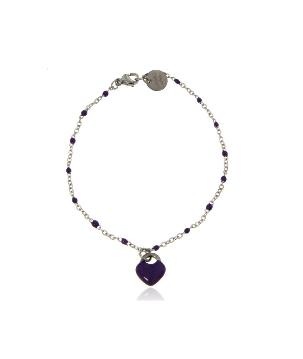 Bracciale con charm cuore bombato smaltato viola in acciaio inox - Lamù gioielli