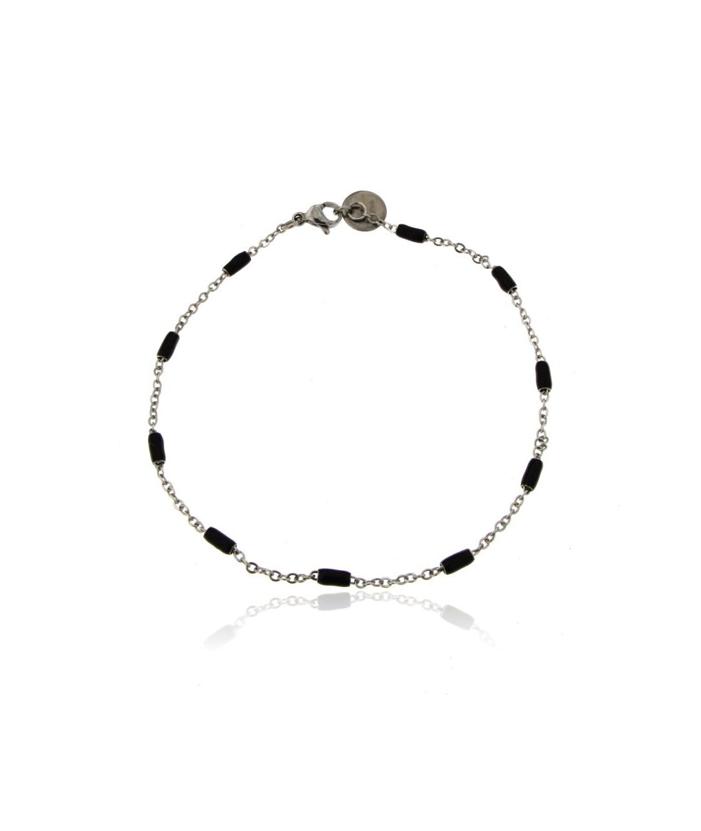 Bracciale donna in acciaio inox con cilindri smaltati colore nero