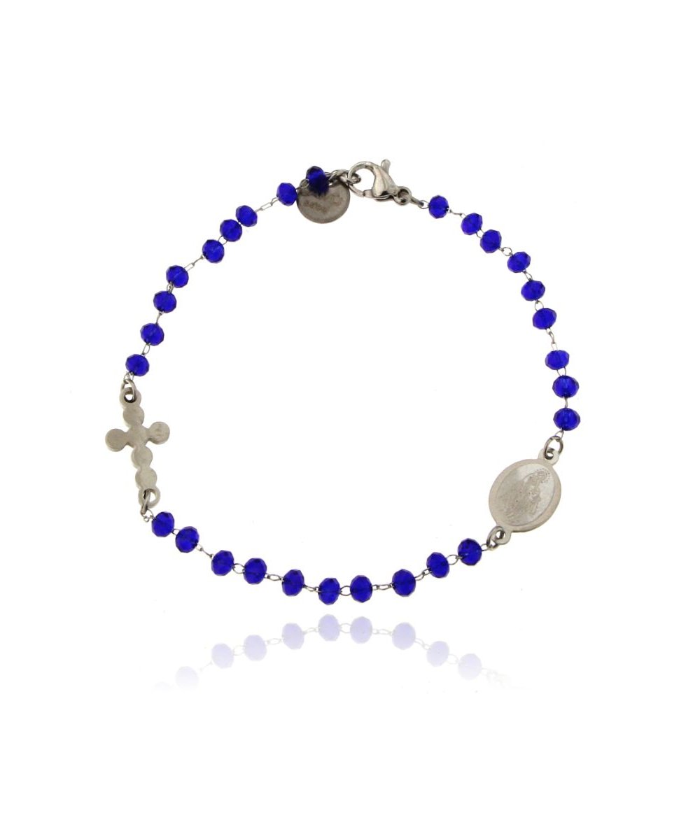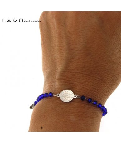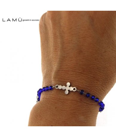 Bracciale rosario catena in acciaio inox con sfere in vetro colore blu - Lamù Gioielli