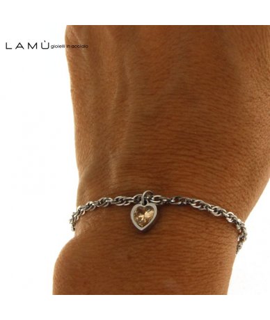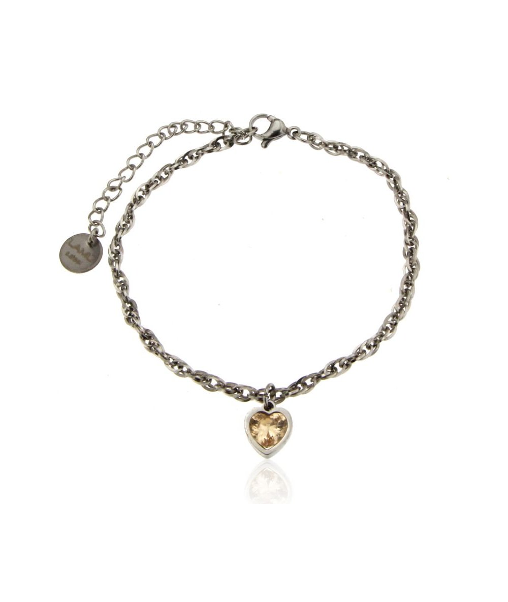 Bracciale catena corda in acciaio inox con cuore zircone quarzo fumè