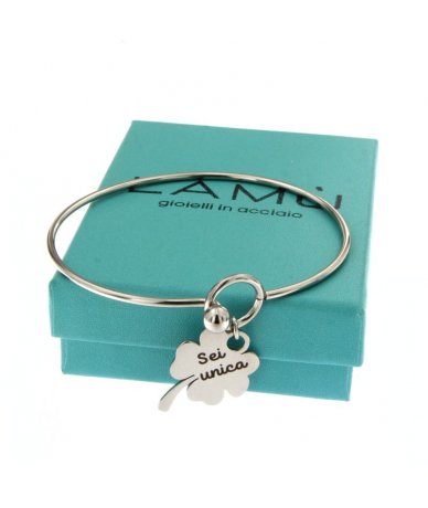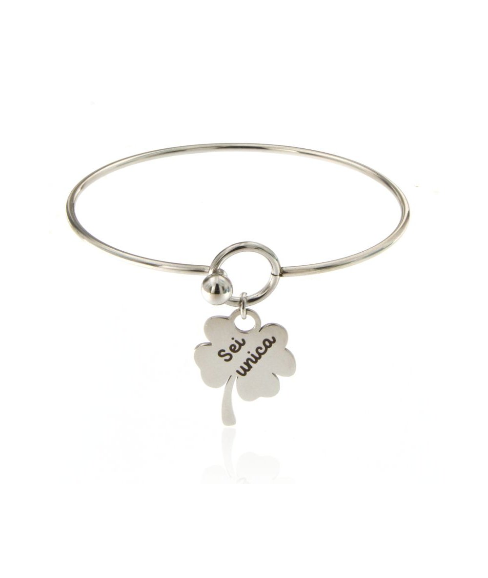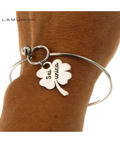 Bracciale rigido con quadrifoglio inciso "Sei unica"