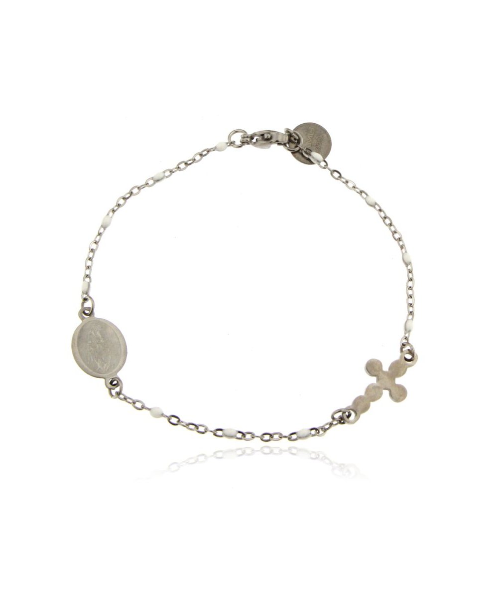Bracciale rosario donna con catena smaltata colore bianco