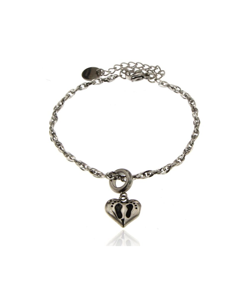 Bracciale con pendente cuore con piedini in acciaio inox