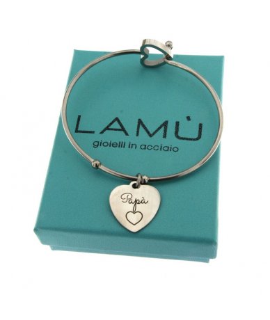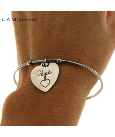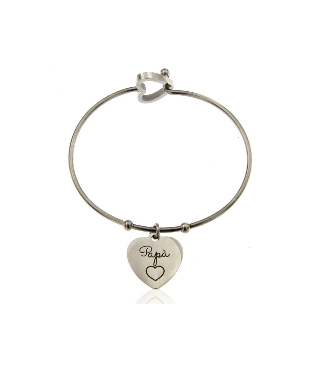 Bracciale rigido in acciaio inox con cuore inciso "Papà"