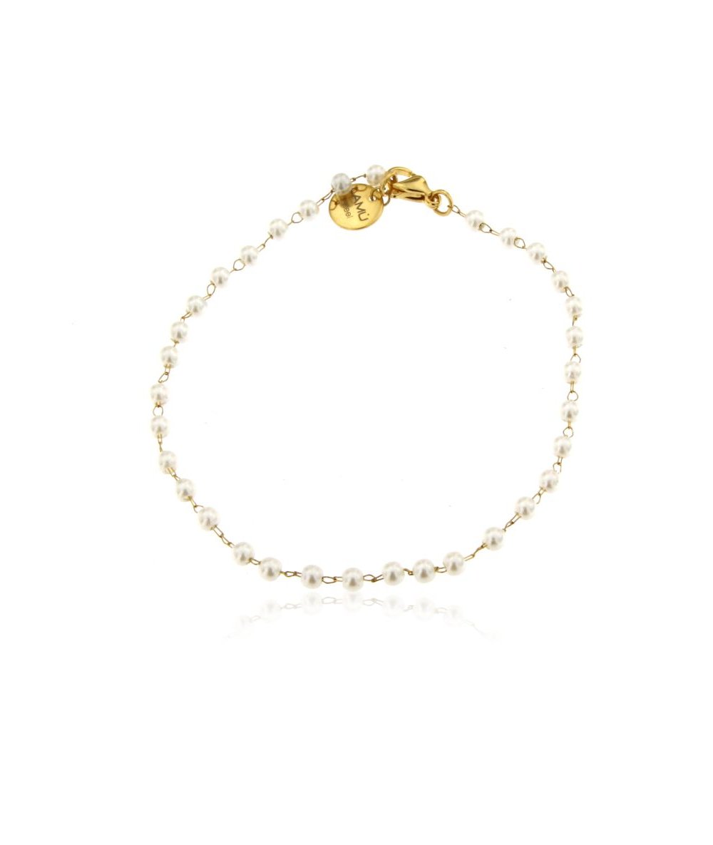 Bracciale catena in acciaio inox oro e perline bianche