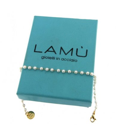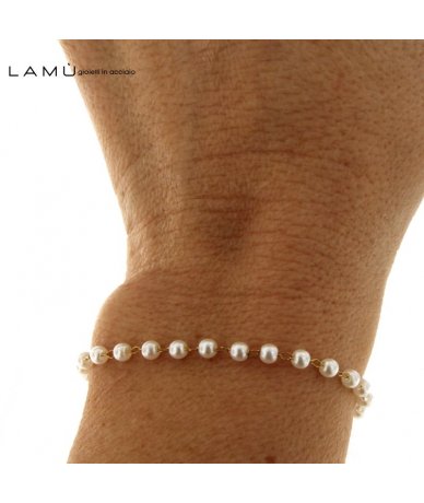 - Bracciale catena in acciaio inox oro e perline bianche