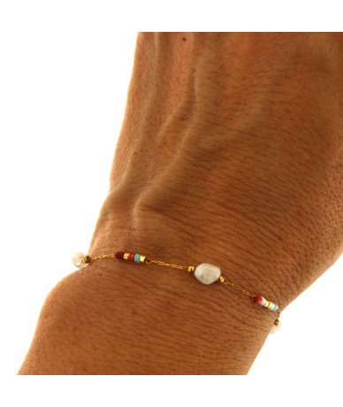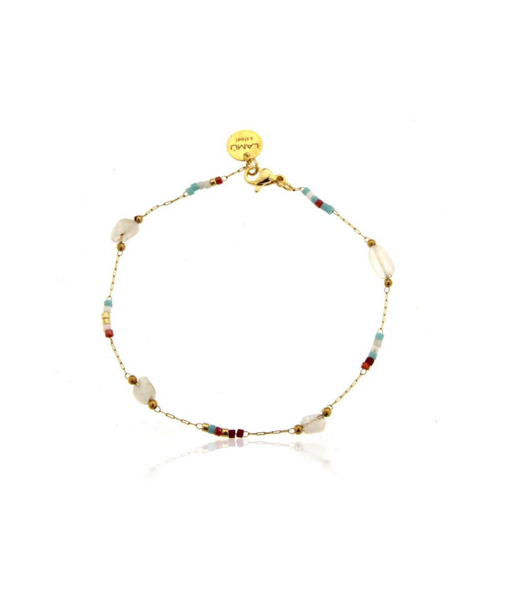 - Bracciale in acciaio inox oro 18k con pietre di agata e sfere multicolore in vetro in vetro