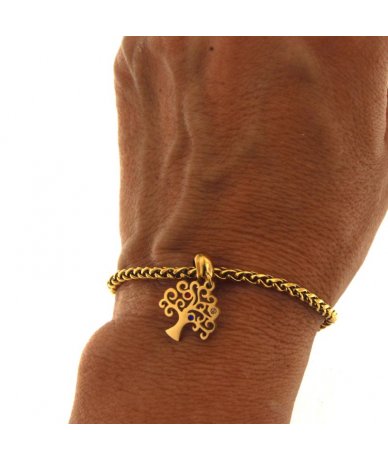 Bracciale in acciaio inox oro con pendente albero della vita con strass multicolore