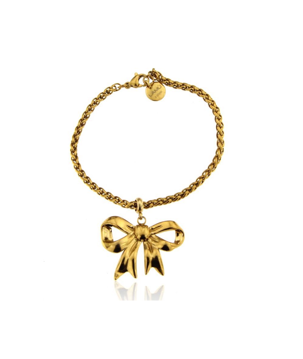 Bracciale con pendente fiocco grande bombato in acciaio inox oro 18k