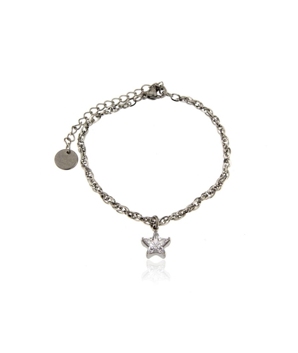 Bracciale in acciaio inox con pendente zircone stella