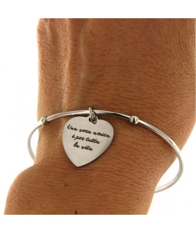 Bracciale rigido in acciaio inox con cuore inciso "Una vera amica è per tutta la vita"