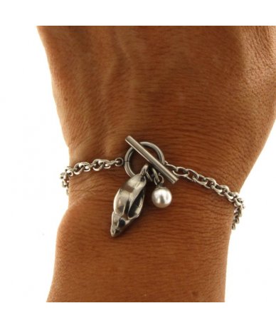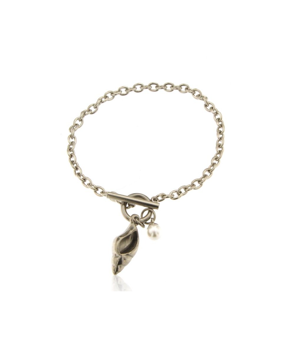 Bracciale in acciaio inox con conchiglia nassa e perla