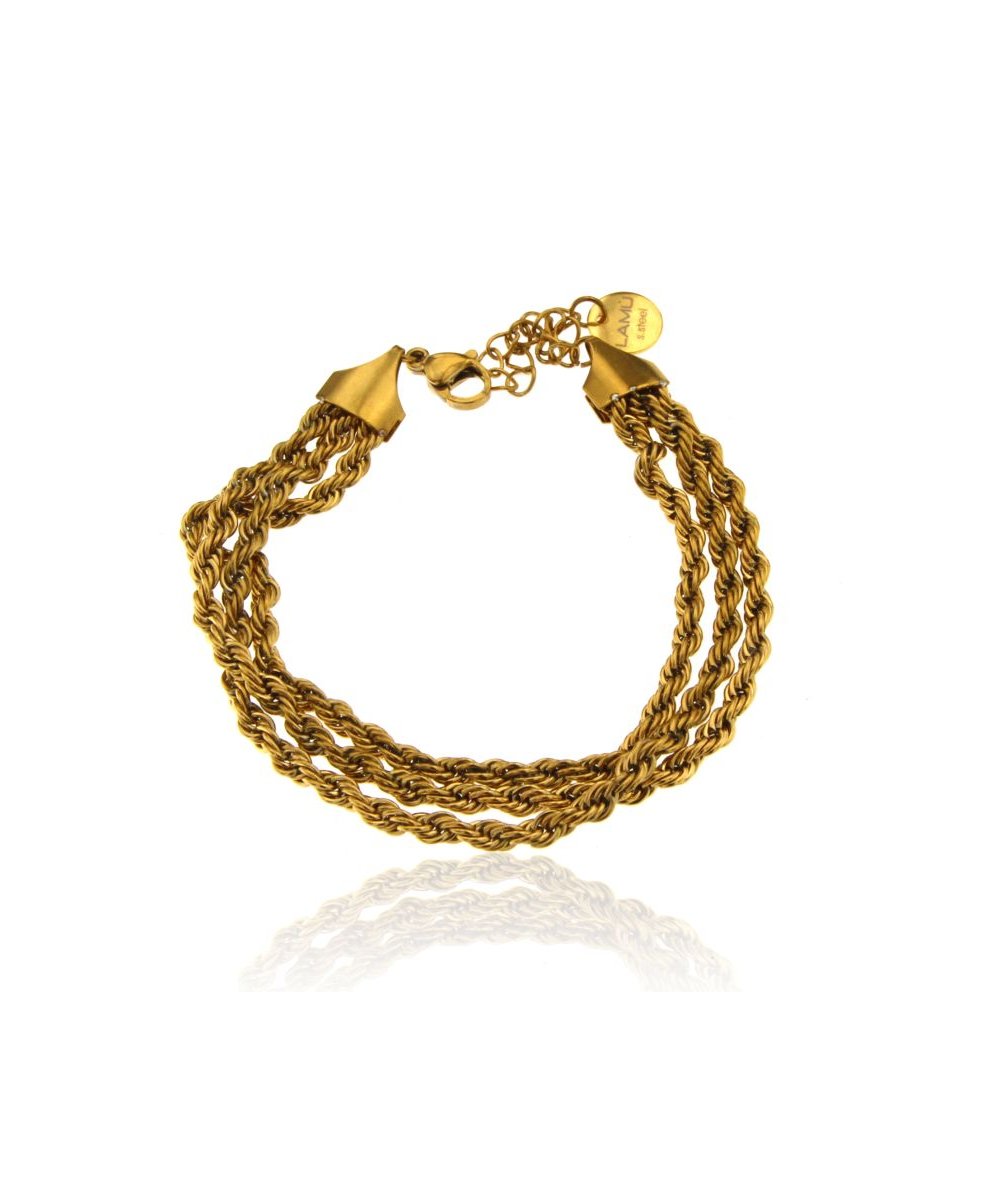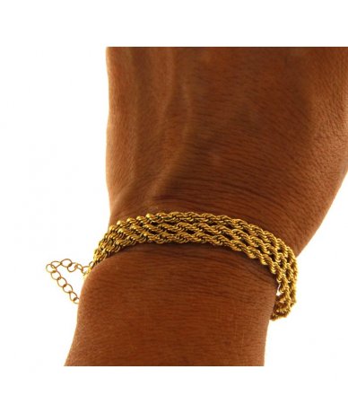 Bracciale multifilo catena a corda in acciaio inox placcato oro 18k