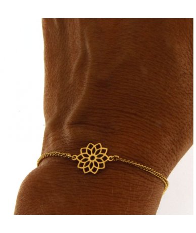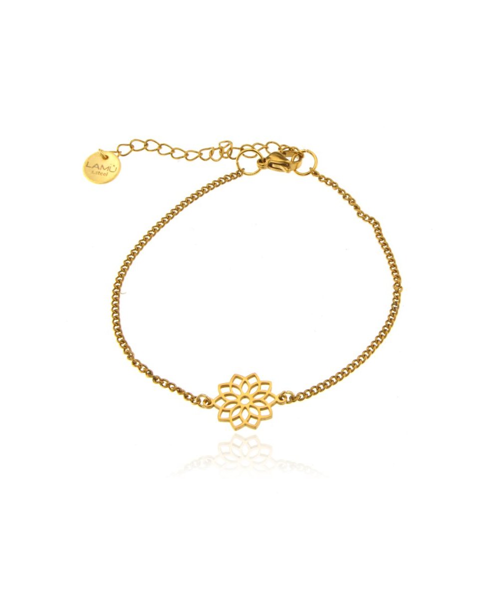 Bracciale con centrale fiore traforato in acciaio inox placcato oro 18k