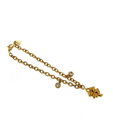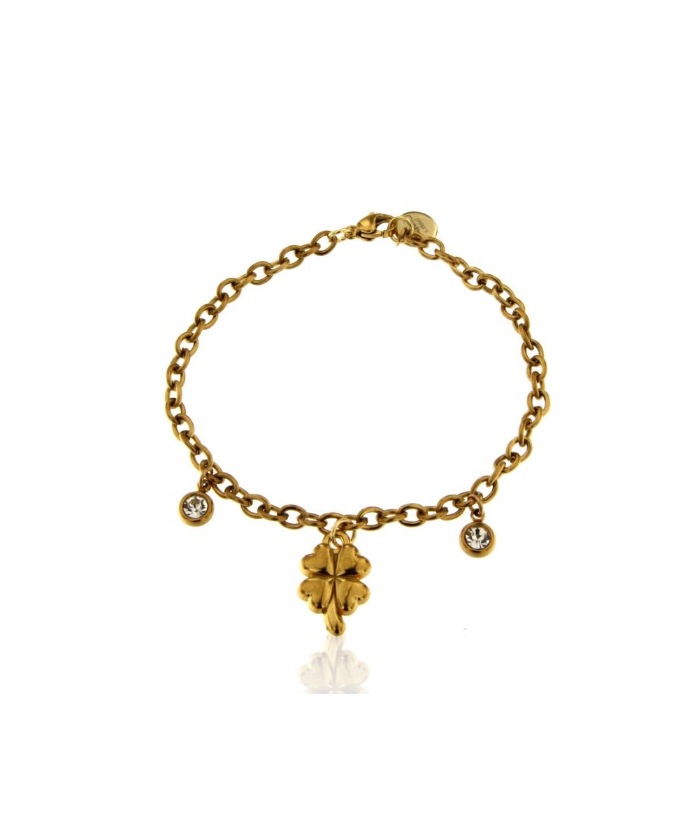 Bracciale con punti luce cristal e pendente quadrifoglio in acciaio inox placcato oro 18k