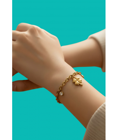 Bracciale con punti luce cristal e pendente quadrifoglio in acciaio inox placcato oro 18k placcato oro 18k