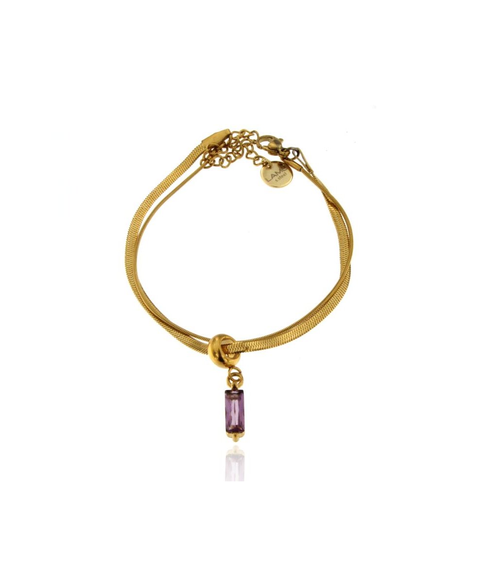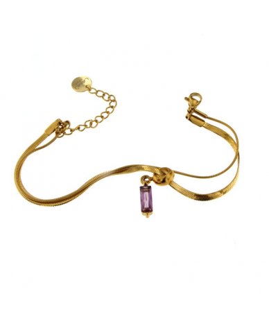 Bracciale spina di pesce con pendente zircone cubico viola in acciaio inox placcato oro 18k
