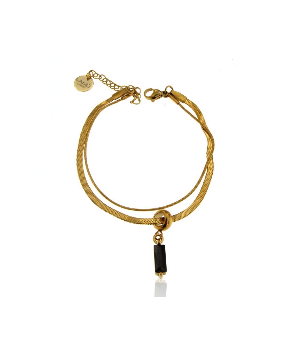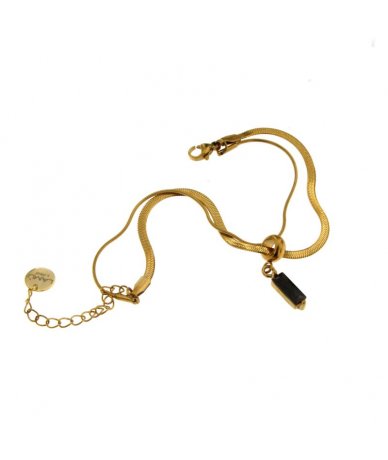 Bracciale spina di pesce con pendente zircone cubico nero in acciaio inox placcato oro 18k