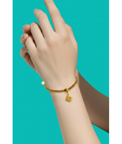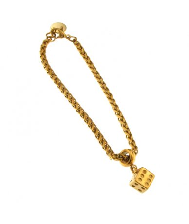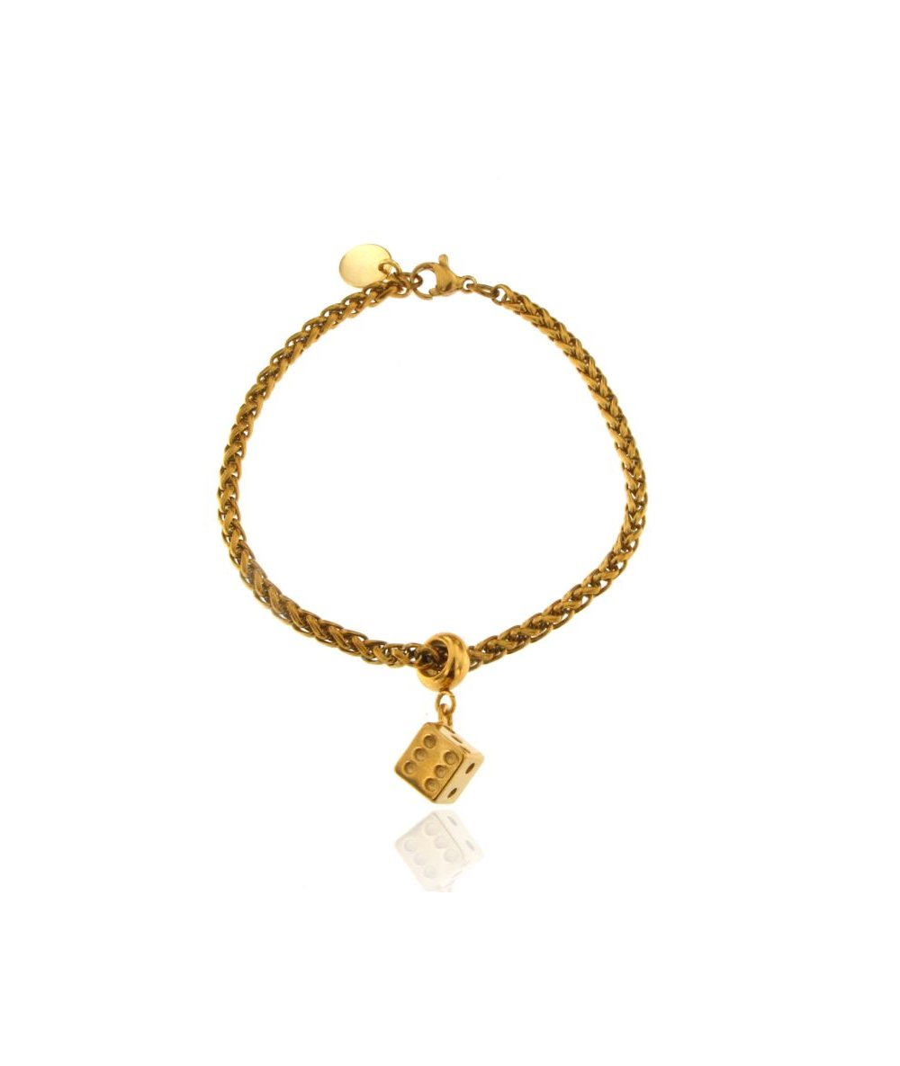 Bracciale con pendente dado in acciaio inox placcato oro 18k