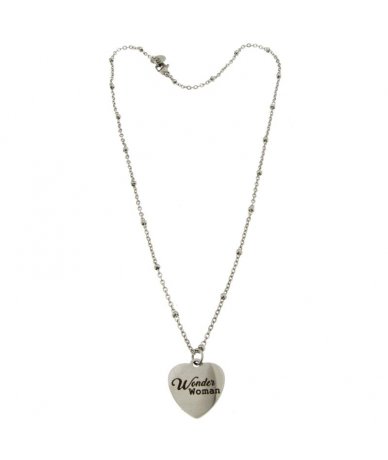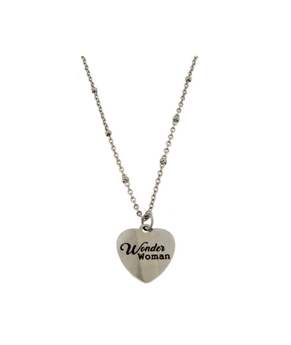 Collana in acciaio inox con pendente cuore inciso "Wonder Woman"