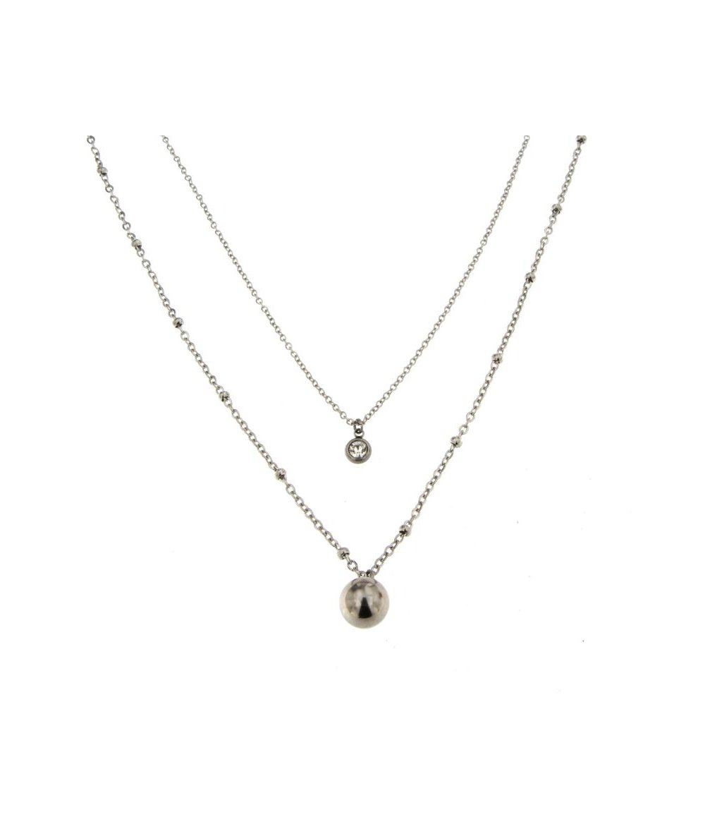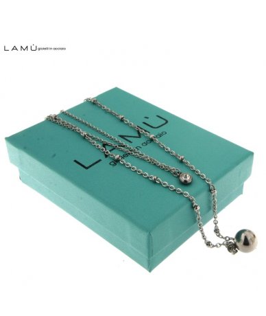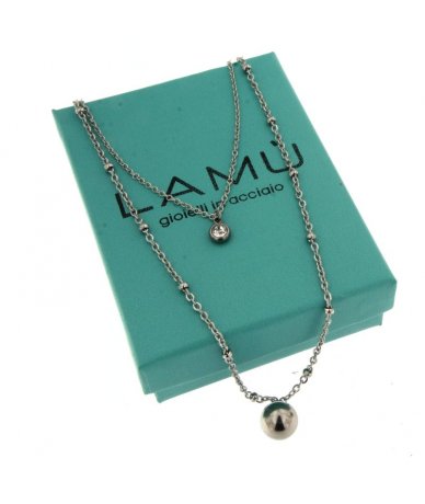 Collana doppia catena con punto luce e sfera in acciaio inox- Lamù gioielli