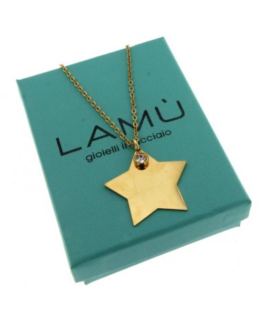 Collana con pendente stella grande e punto luce in acciaio inox finitura oro