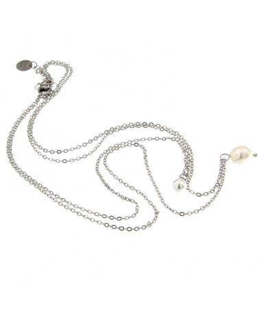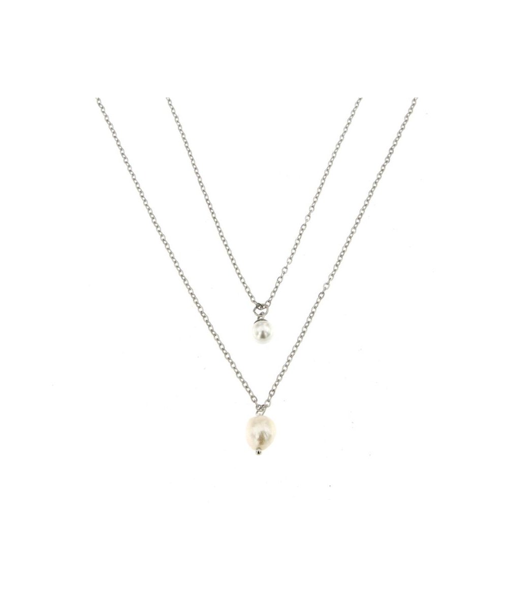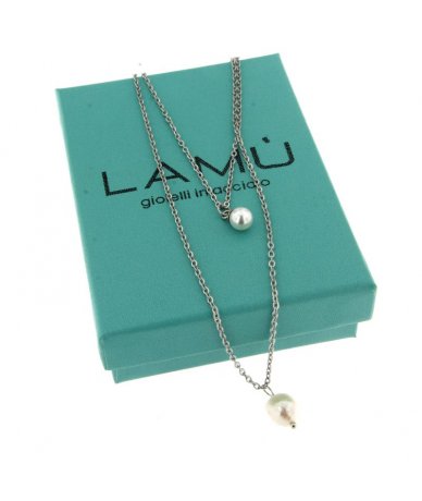 Collana doppia catena con piccola perla e perla d'acqua dolce - Lamù gioielli