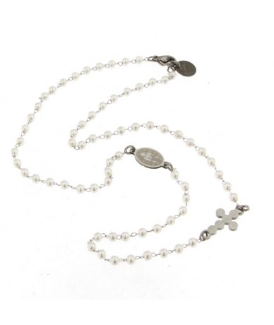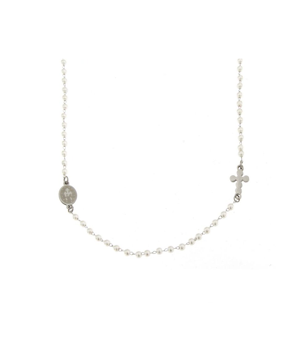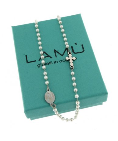 Collana rosario catena in acciaio inox con piccole perline - Lamù Gioielli
