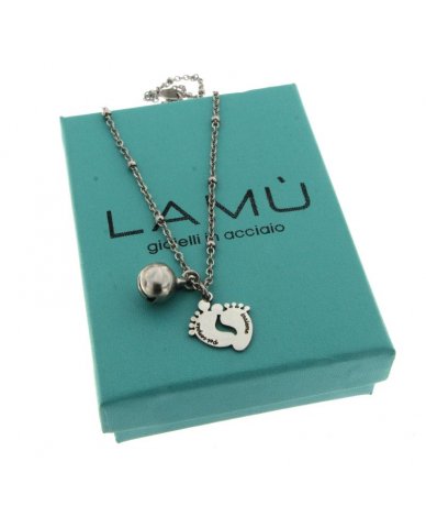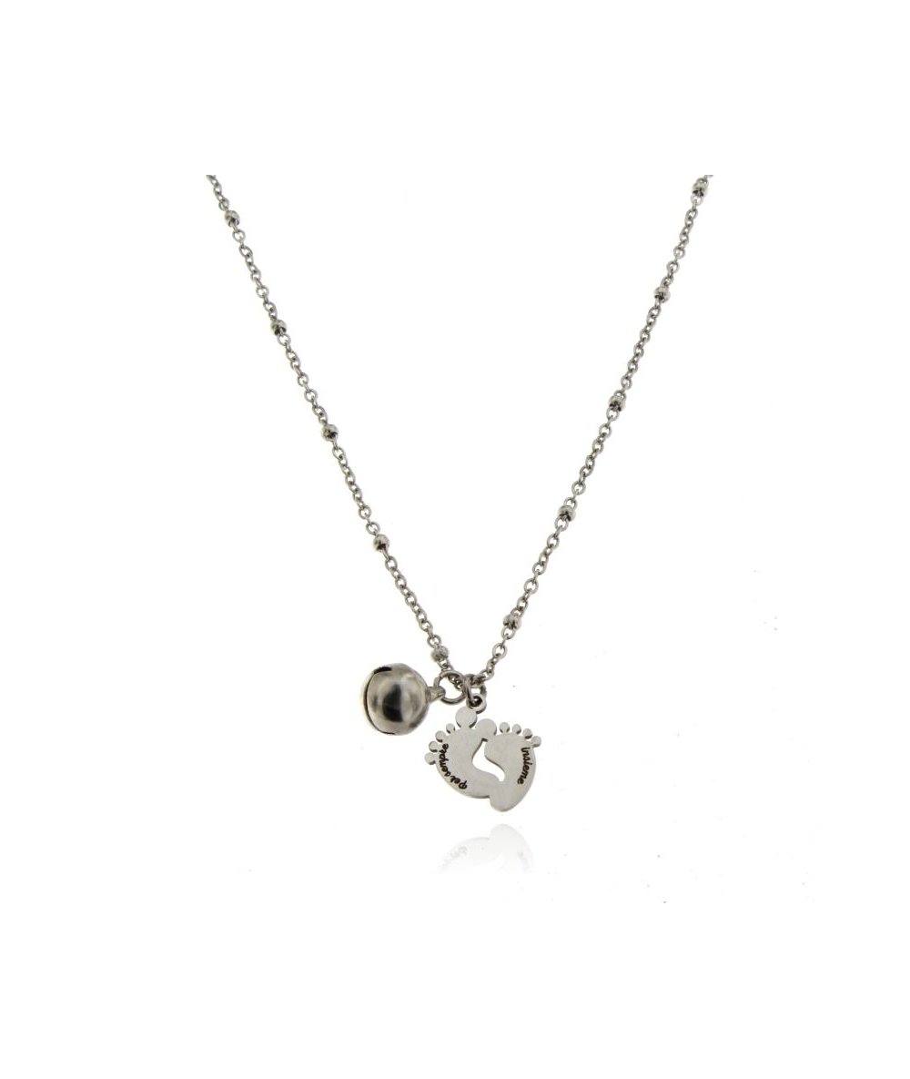 Collana in acciaio inox con piedini incisi "Per sempre insieme"