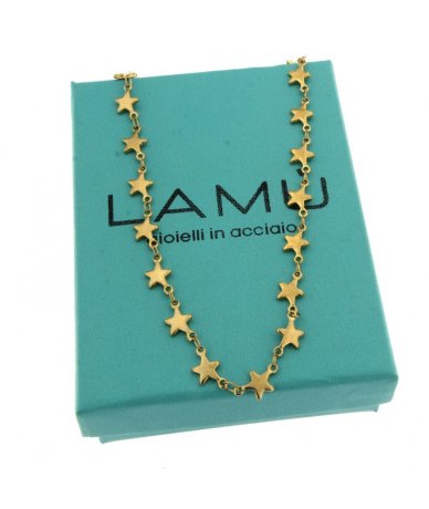 Collana in acciaio inox maglia stelle finitura oro