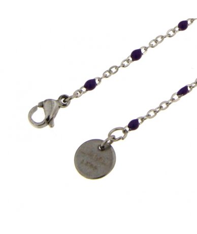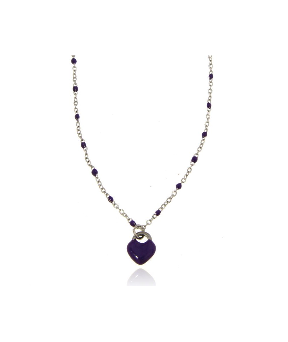 Collana con charm cuore bombato smaltato viola in acciaio inox - Lamù gioielli