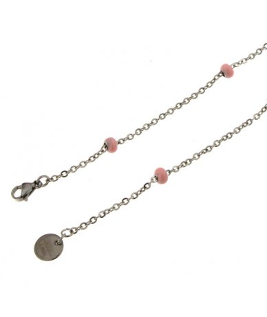 Collana catenina 50 cm in acciaio inox con sfere grandi smaltate rosa