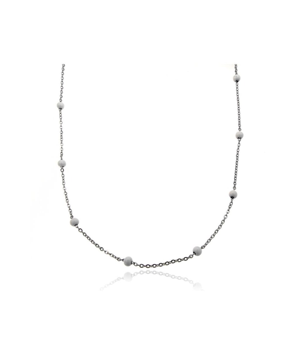 Collana catenina 40 cm in acciaio inox con sfere grandi smaltate bianche - Lamù gioielli