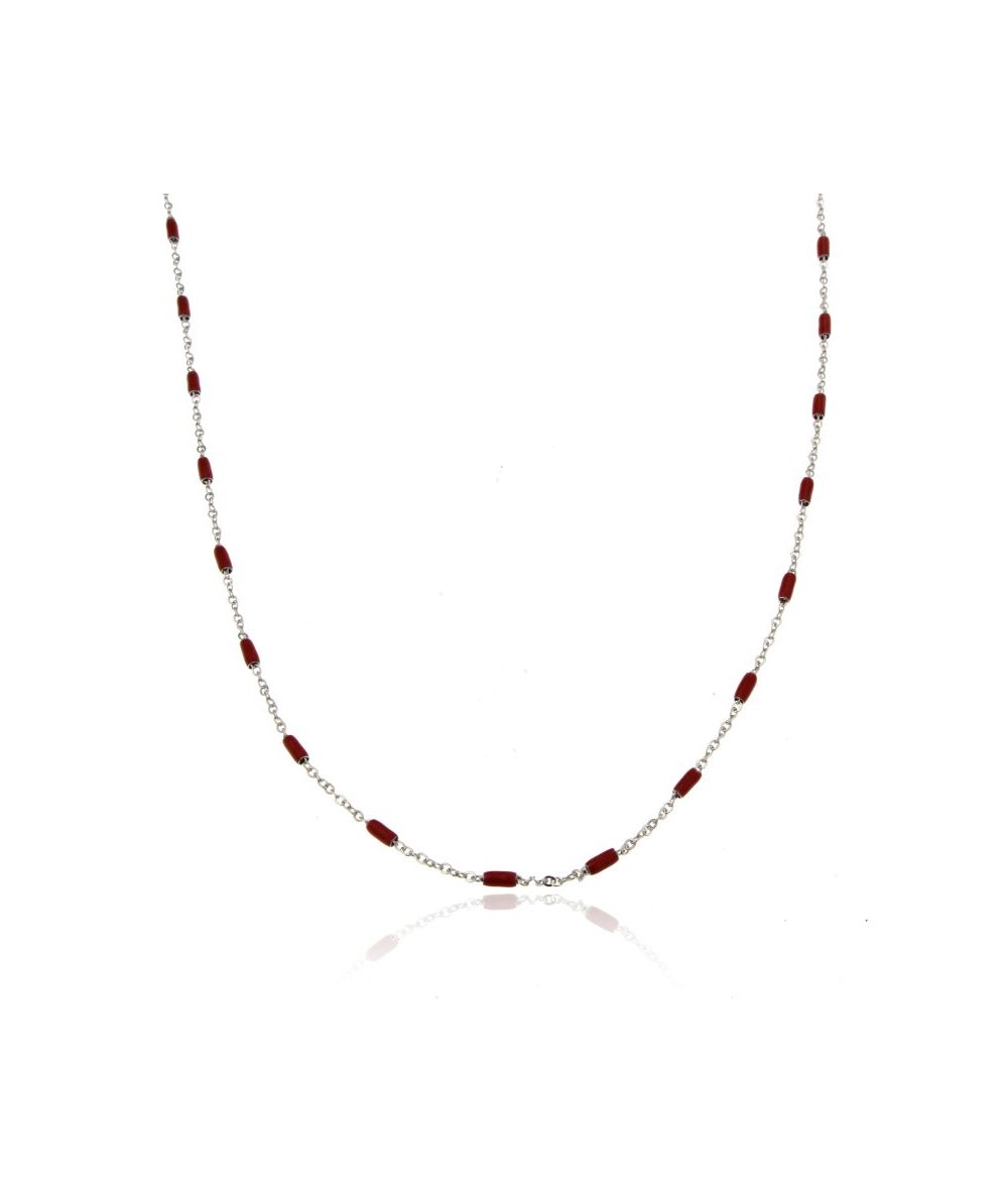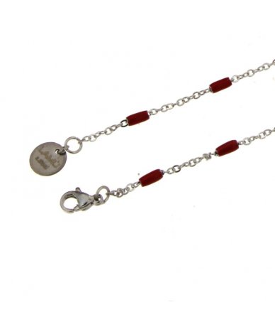 Collana uomo in acciaio inox con cilindri smaltati colore rosso