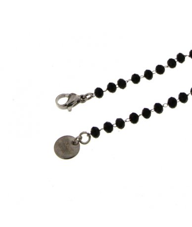 Collana rosario catena in acciaio inox con sfere in vetro colore nero - Lamù Gioielli