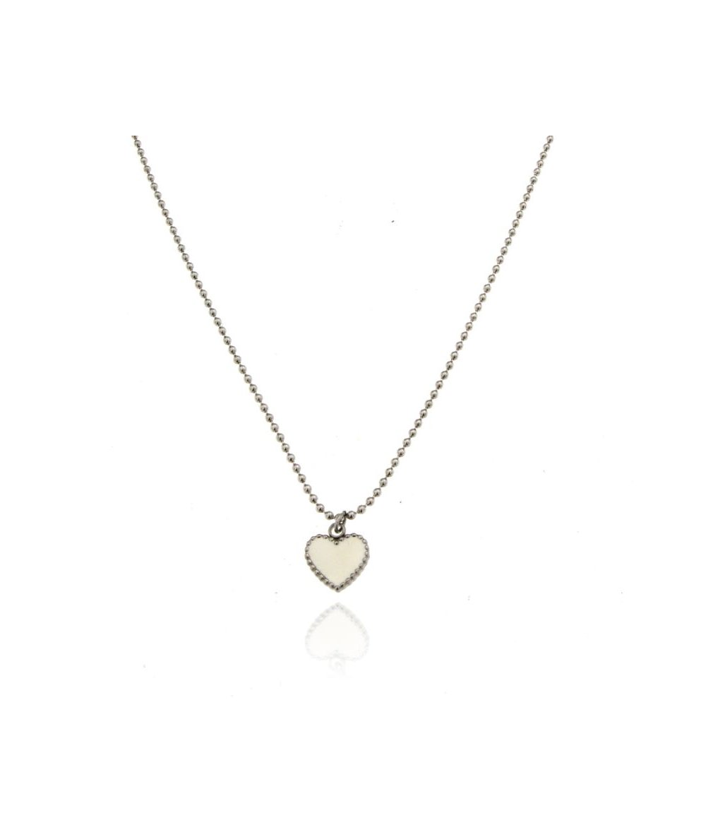 Collana piccole sfere in acciaio inox pendente cuore smaltato bianco