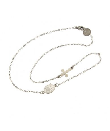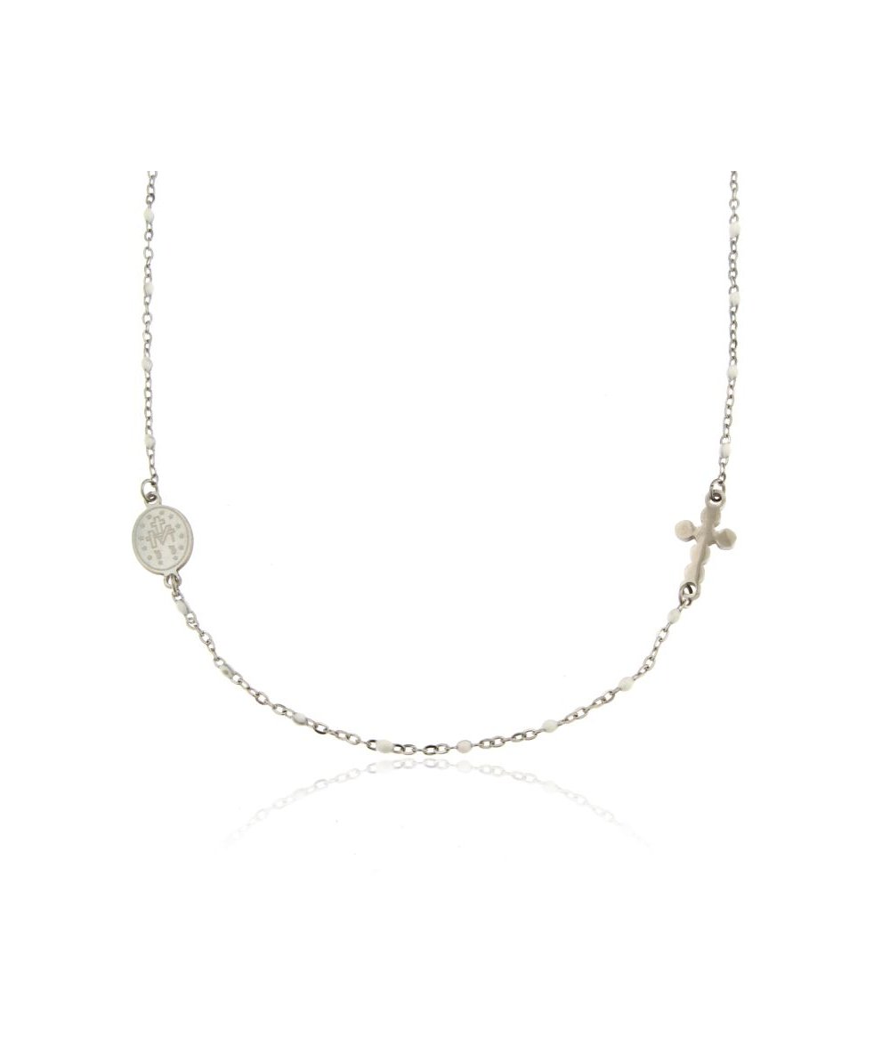 Collana rosario con catena smaltata colore bianco in acciaio inox