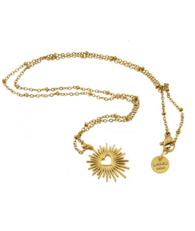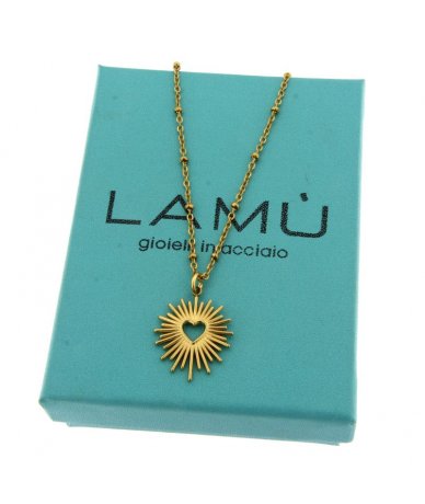 Collana in acciaio inox con pendente cuore con raggi finitura oro