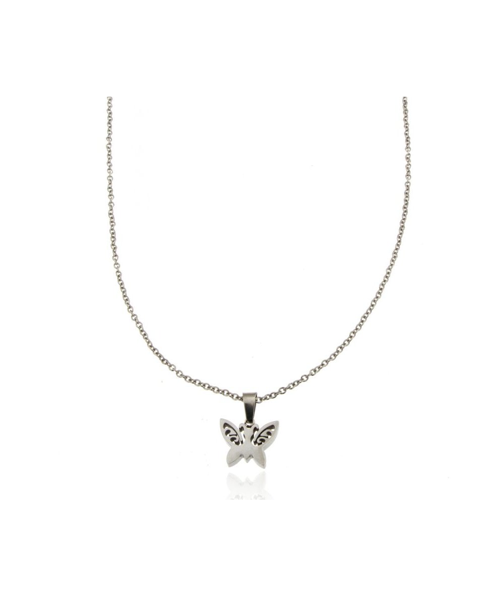 Collana in acciaio inox con ciondolo farfalla
